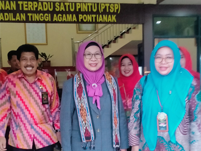 Walaupun penerbangan sempat di delay, dengan didampingi suami, Dr. Hj. Rokhanah, S.H., M.H. tiba sekitar pukul 14.30 WIB dan disambut oleh Wakil Ketua Pengadilan Tinggi Agama Pontianak.