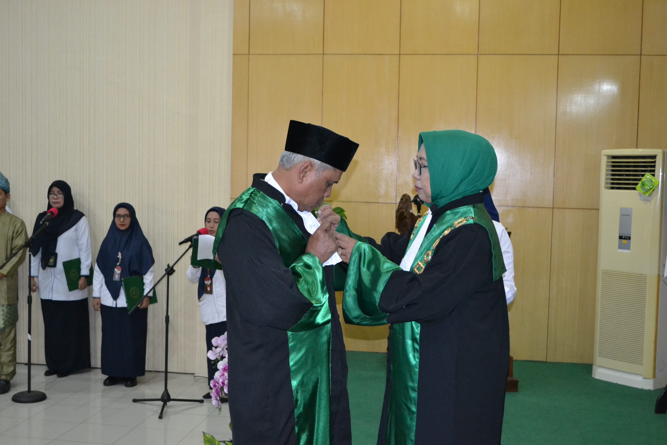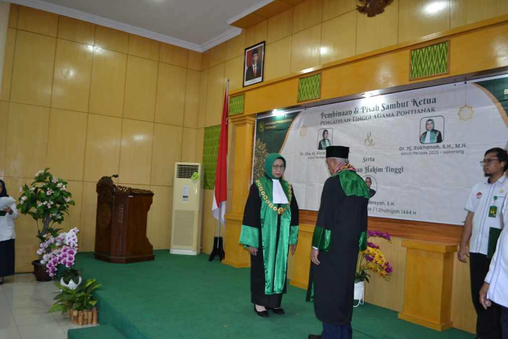 Pengadilan Tinggi Agama Pontianak kemarin (19/06) menggelar upacara wisuda Purnabakti Hakim Tinggi, Drs. H. Iri Hermansyah, S.H. yang dipimpin langsung oleh Ketua Pengadilan Tinggi Agama Pontianak, Dr. Hj. Rokhanah, S.H., M.H. Acara yang berlangsung haru dan khidmat ini dilaksanakan di Command Center Pengadilan Tinggi Agama Pontianak yang dihadiri oleh seluruh Aparatur Pengadilan Tinggi Agama Pontianak, Ketua, Wakil Ketua, Panitera dan Sekretaris Pengadilan Agama se-Kalimantan Barat.