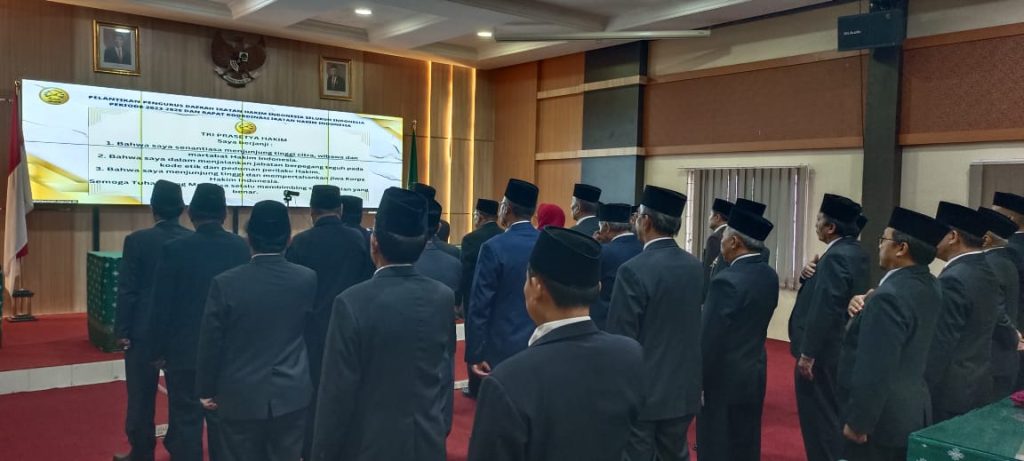(30/01/2024) – Ketua Umum Pengurus Pusat Ikatan Hakim Indonesia, Dr. H. Yasardin, S.H., M.Hum. melantik seluruh pengurus IKAHI Daerah secara Hybrid dari pukul 08.00 WIB sampai dengan selesai. Untuk IKAHI Kalbar sendiri, acara berlangsung di Aula Pengadilan Tinggi Pontianak.