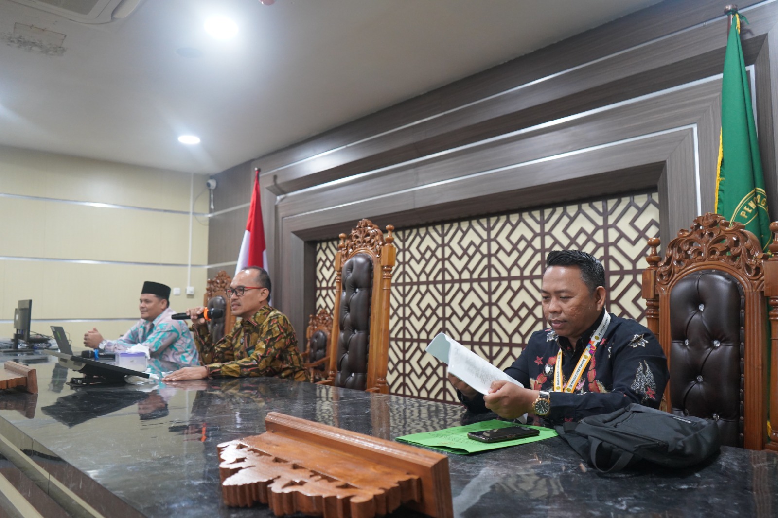 (Bengkayang, 9 Mei 2025) – Wakil Ketua Pengadilan Tinggi Agama (PTA) Pontianak, Drs. M. Rosyid Ya`Kub, M.H., didampingi Kasubbag Rencana Program dan Anggaran melakukan kunjungan kerja ke Pengadilan Agama (PA) Bengkayang pada tanggal 8–9 Mei 2025. Kunjungan ini bertujuan untuk melakukan pemantauan langsung terhadap fasilitas kantor baru PA Bengkayang serta memberikan pembinaan kepada seluruh aparatur peradilan setempat.