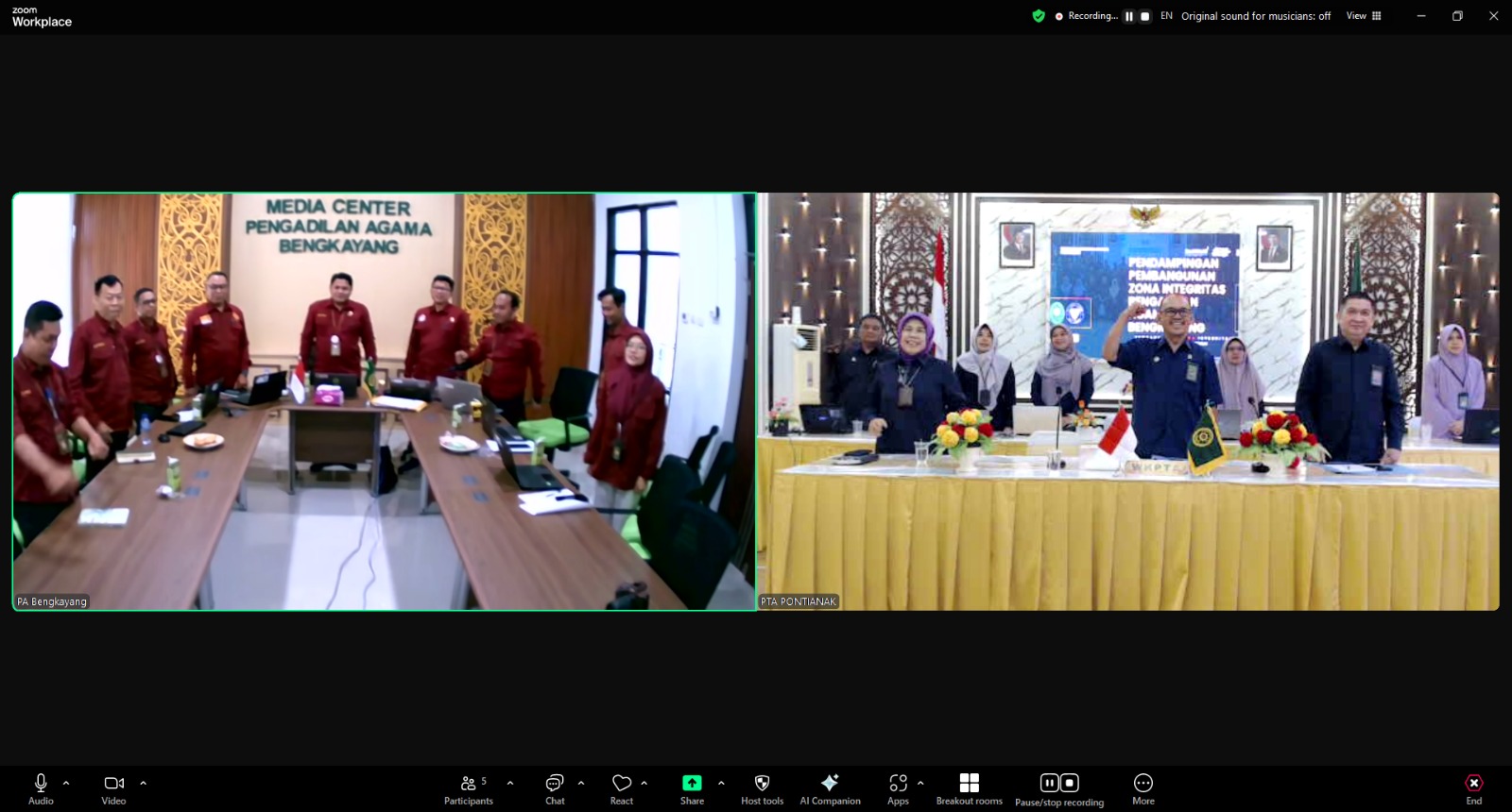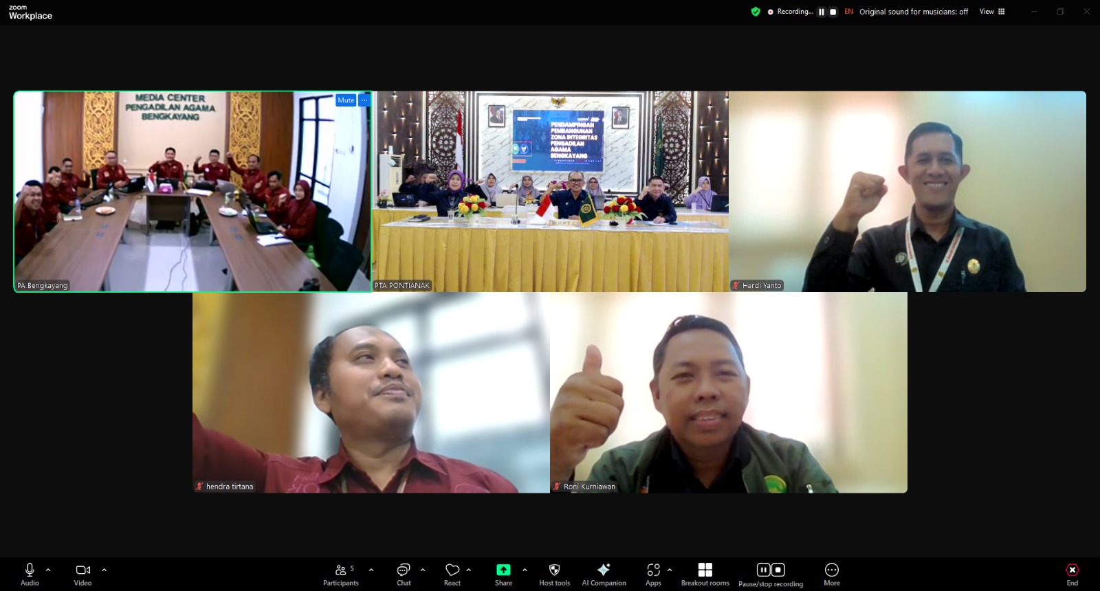 (Pontianak, 21 Mei 2025) — Pengadilan Tinggi Agama (PTA) Pontianak kembali menunjukkan komitmennya dalam mendukung satuan kerja di wilayah hukumnya untuk meraih predikat Wilayah Bebas dari Korupsi (WBK). Pada Rabu, 21 Mei 2025, pukul 09.00 WIB, PTA Pontianak memberikan pendampingan secara daring kepada Pengadilan Agama (PA) Bengkayang dalam rangka pembangunan Zona Integritas (ZI) menuju WBK.