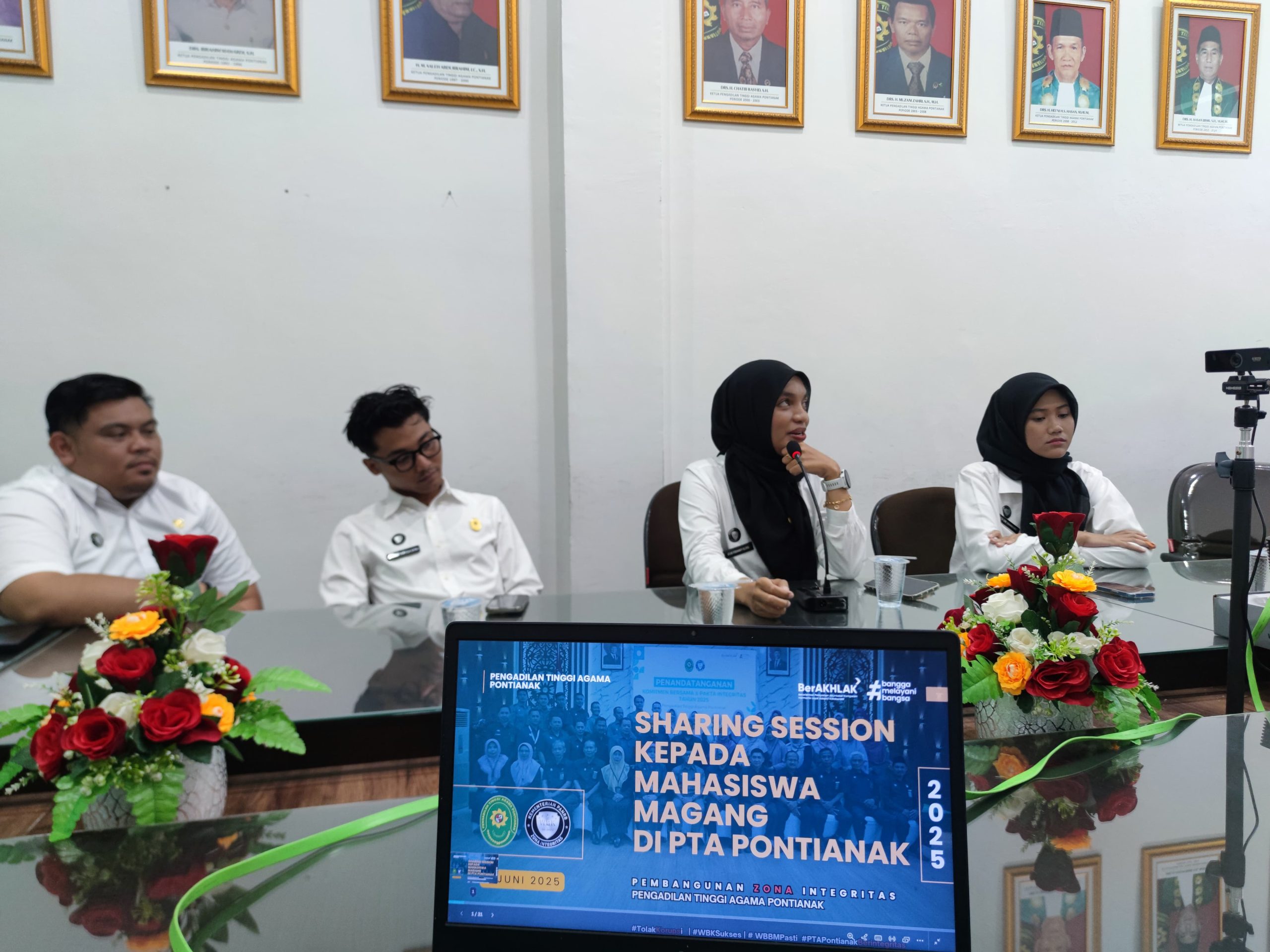 Pontianak, 4 Juni 2025 – Pengadilan Tinggi Agama (PTA) Pontianak terus berinovasi dalam mengembangkan potensi SDM-nya, kali ini giliran generasi muda yang magang mendapat insight melalui kegiatan Upgrading Skill Series. Pada Rabu (4/6) pukul 13.30 WIB di Command Center, mahasiswa magang mendapat pembekalan khusus mengenai seleksi tes Calon Pegawai Negeri Sipil (CPNS), termasuk berbagi strategi dan pengalaman dari para CPNS muda di PTA Pontianak yang telah berhasil lolos seleksi.