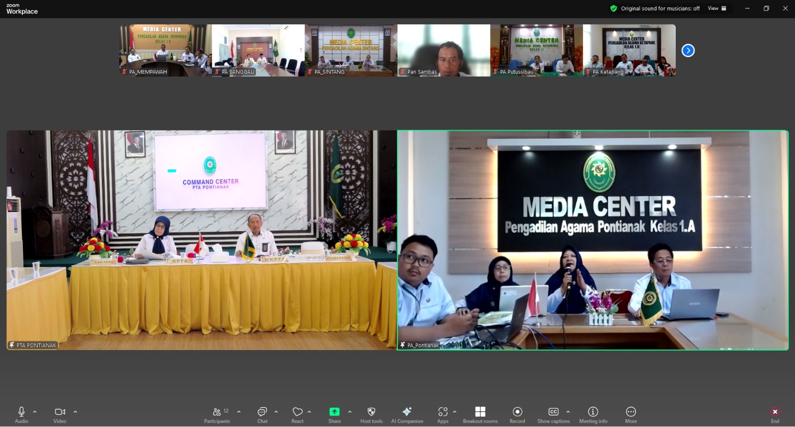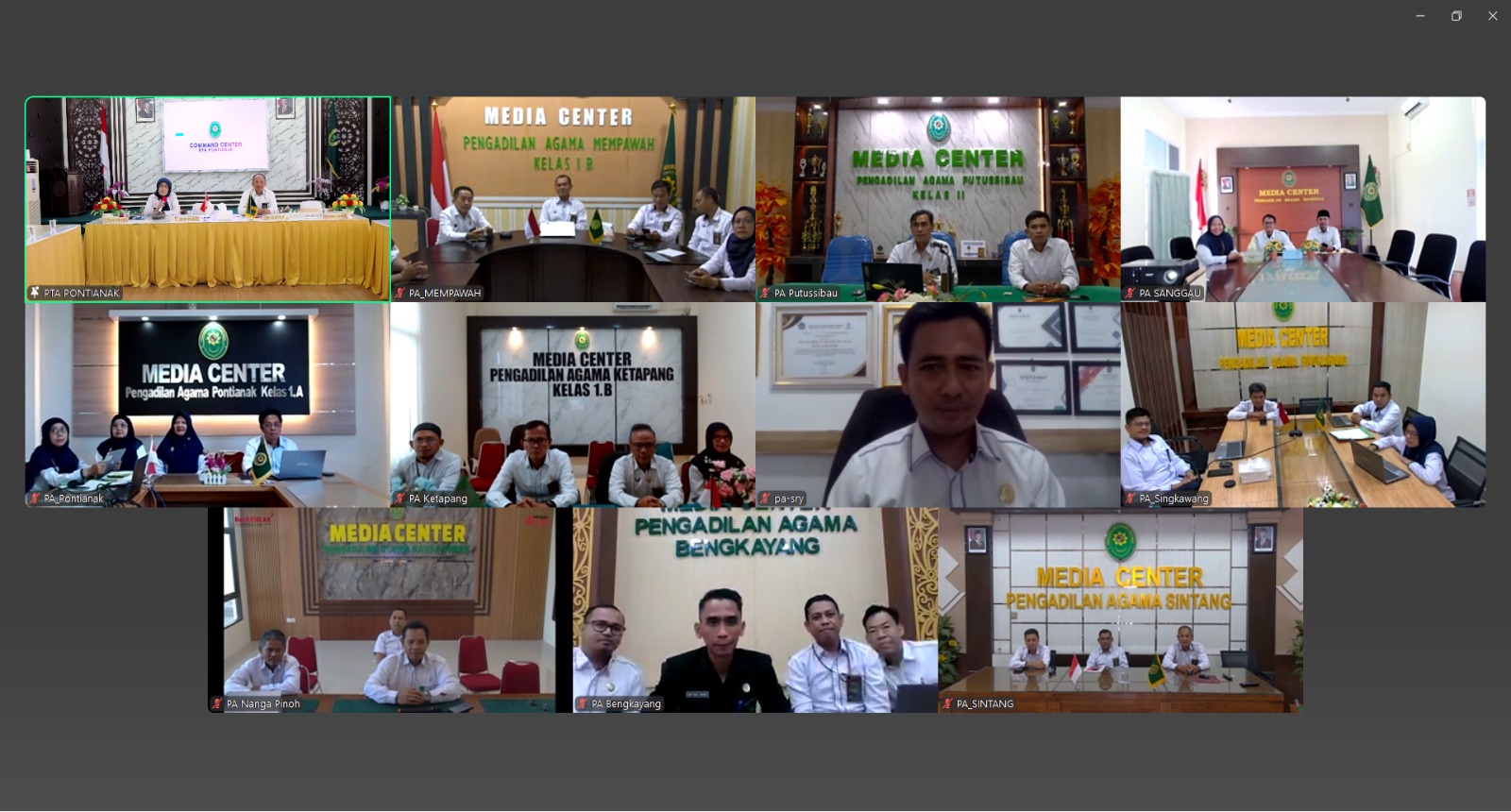 Sehubungan hal tersebut, Ketua, Panitera dan Tenaga Teknis Kepaniteran Pengadilan Agama se-Kalimantan Barat telah mengikuti kegiatan Monitoring dan Evaluasi terkait unggah salinan putusan perkara e-Court yang diadakan oleh PTA Pontianak secara daring menggunakan media Zoom Meeting pada hari Senin 14 Juli 2025 pukul 14.00 WIB. Adapun kegiatan Monev tersebut dipimpin oleh Wakil Ketua PTA Pontianak, Bapak Drs. H. Suhardi, S.H., M.H. dan dimoderatori oleh Panitera PTA Pontianak, Ibu Dra. Hj. Nur Laela, M.H.