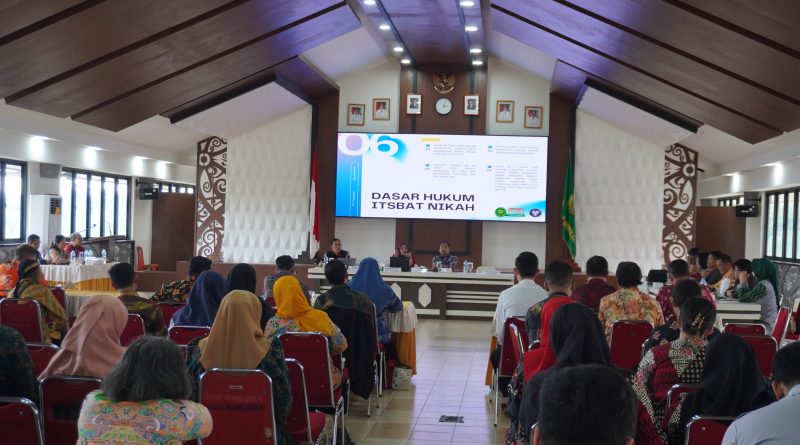 Sebagai narasumber, Dr. Siti Amanah, S.H., M.H. (Panitera PTA Pontianak) menyampaikan materi mengenai Dokumen Hukum Pasca Perceraian, Itsbat Nikah Terpadu, dan Penetapan Asal Usul Anak. Ia juga memaparkan data statistik perkara tiga tahun terakhir di Kalimantan Barat meliputi perceraian, itsbat nikah, dan dispensasi kawin.