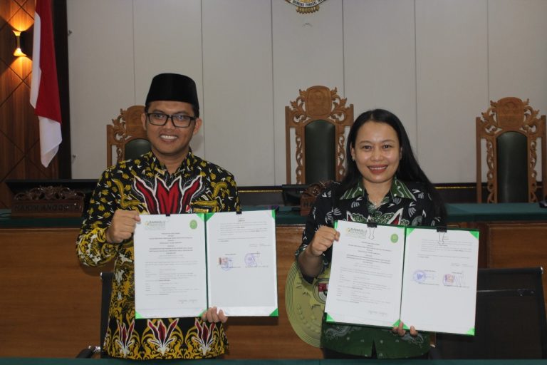 SANGGAU, 14 November 2025 – Pengadilan Agama Sanggau dan Badan Pengawas Pemilihan Umum Kabupaten Sanggau menandatangani Memorandum of Understanding (MoU) sebagai bentuk sinergitas dan kolaborasi antarinstansi dalam upaya memperkuat tugas-tugas kelembagaan yang saling mendukung. Penandatanganan yang berlangsung di Ruang Sidang Utama Pengadilan Agama Sanggau ini dilakukan oleh Ketua Pengadilan Agama Sanggau, H. Helman Fajry, S.H.I., M.H.I., bersama Ketua Bawaslu Kabupaten Sanggau, Septiana Ika Kristia, S.Sos.
