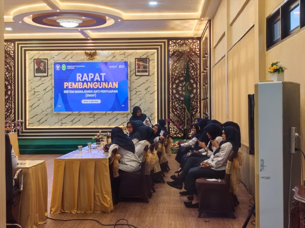 Pontianak, 6 April 2026 – Pengadilan Tinggi Agama Pontianak menggelar Rapat Pembangunan Sistem Manajemen Anti Penyuapan (SMAP) pada Senin, 6 April 2026 pukul 13.30 WIB di Aula PTA Pontianak. Kegiatan ini dihadiri oleh pimpinan, hakim tinggi, serta seluruh aparatur sebagai bentuk komitmen bersama dalam membangun budaya kerja yang bersih dan berintegritas.