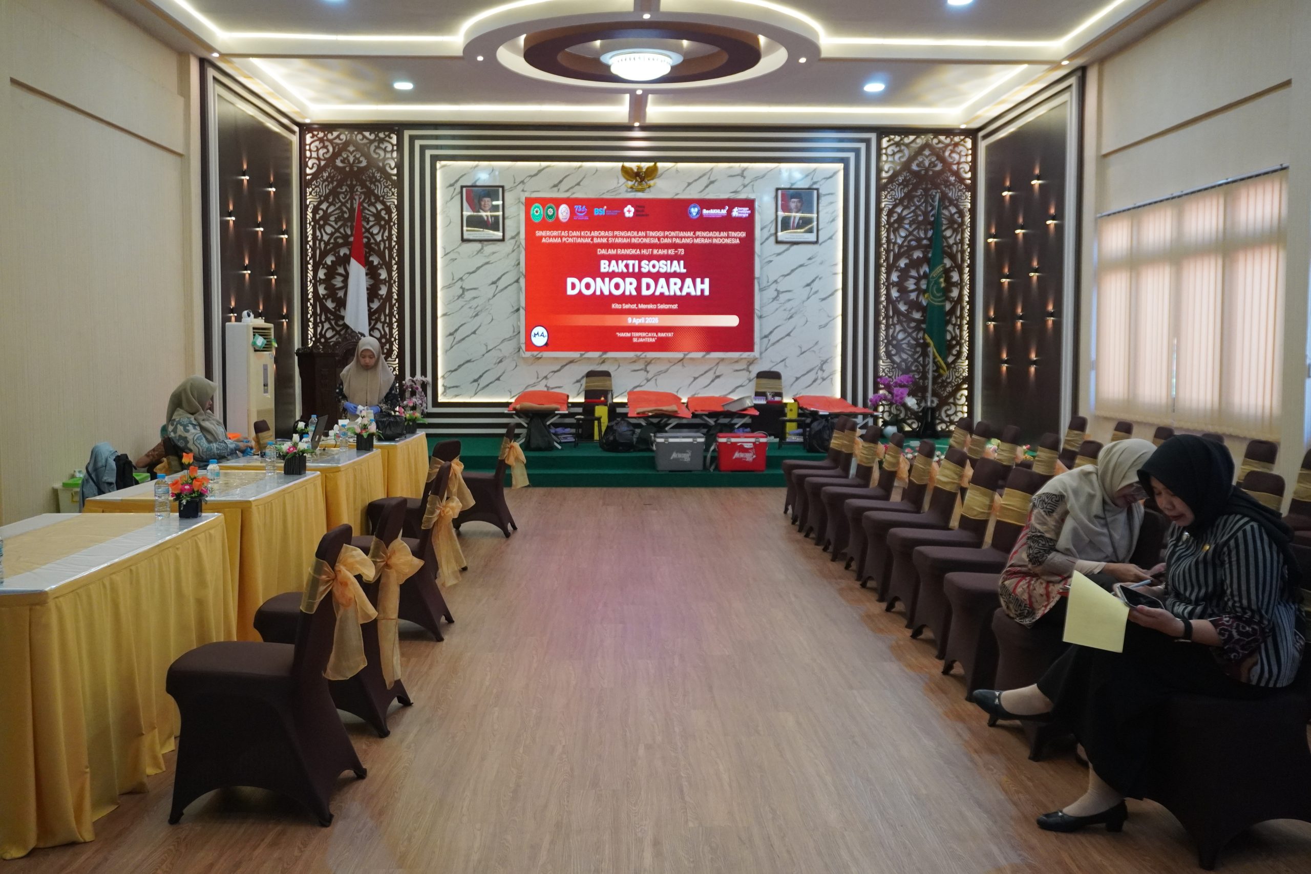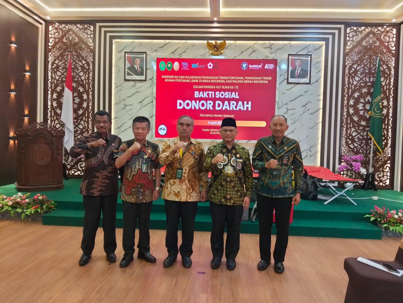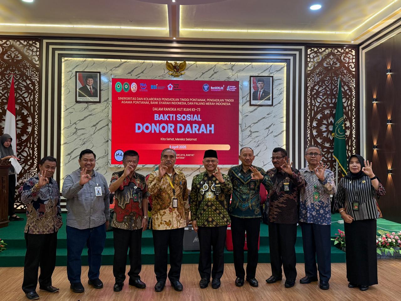 Dalam rangka memeriahkan Hari Ulang Tahun (HUT) Ikatan Hakim Indonesia (IKAHI) ke-73, Pengadilan Tinggi Agama (PTA) Pontianak bekerja sama dengan Pengadilan Tinggi (PT) Pontianak menggelar aksi kemanusiaan berupa Bakti Sosial Donor Darah pada Kamis (09/04). Acara ini merupakan wujud kepedulian sosial para hakim dan aparatur peradilan terhadap sesama.
