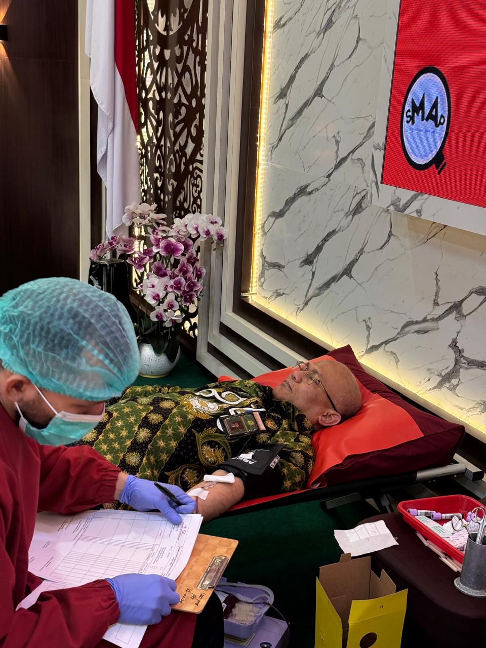 Momen puncak sekaligus paling inspiratif dalam acara ini adalah ketika Ketua PTA Pontianak, Dr. Candra Boy Seroza, S.Ag., M.Ag., turun langsung menjadi peserta donor darah. Keikutsertaan beliau tidak hanya sebagai bentuk dukungan formal, tetapi juga sebagai teladan nyata bagi seluruh bawahan mengenai pentingnya berbagi untuk kehidupan orang lain.