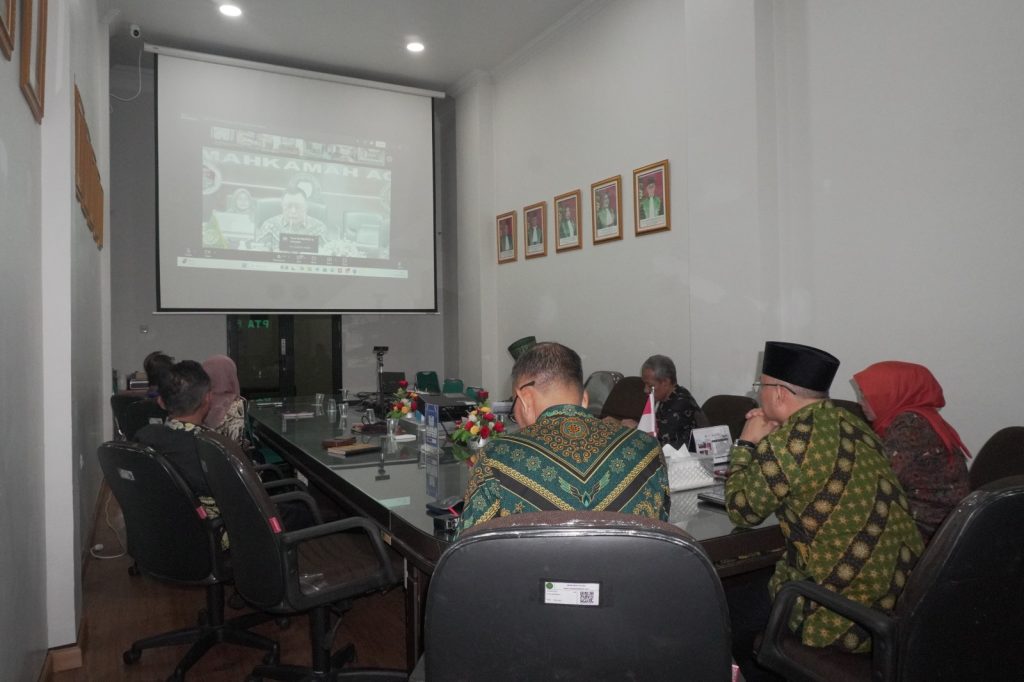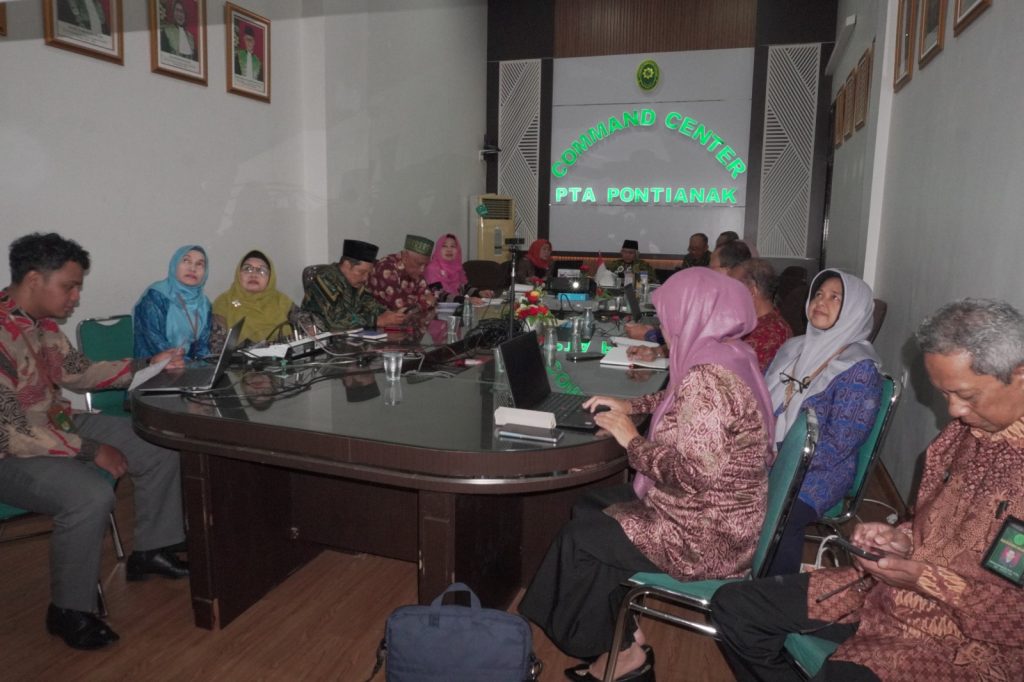 Pontianak – Jajaran pimpinan, hakim, serta seluruh tenaga teknis Pengadilan Tinggi Agama (PTA) Pontianak mengikuti kegiatan Bimbingan Teknis (Bimtek) yang diselenggarakan oleh Direktorat Jenderal Badan Peradilan Agama (Badilag) Mahkamah Agung RI secara daring pada hari ini.