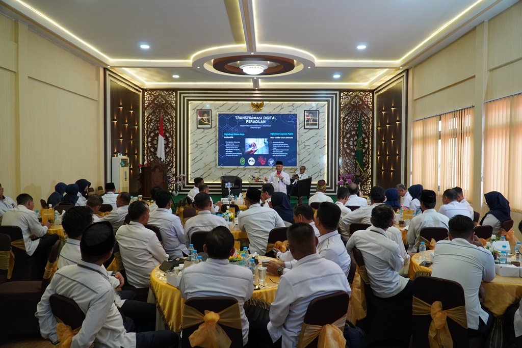 Dalam arahannya, Beliau menguraikan sejumlah langkah strategis yang perlu diimplementasikan oleh seluruh satuan kerja. Di antaranya adalah penguatan kerja sama kelembagaan dalam penyelenggaraan Pelayanan Terpadu Satu Pintu (PTSP) serta optimalisasi persidangan secara daring guna memperluas akses layanan hukum bagi masyarakat.