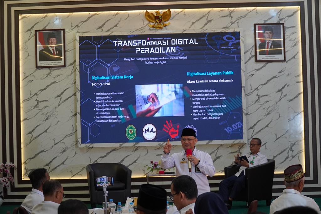 Dalam pembinaannya, Beliau tegaskan pentingnya transformasi peradilan agama menuju sistem yang adaptif terhadap perkembangan teknologi serta mampu menjawab kebutuhan masyarakat. Hal ini sejalan dengan tema Rakor tahun ini, yakni “Peradilan Agama Modern dan Terpercaya, Masyarakat Aman dan Sejahtera.”