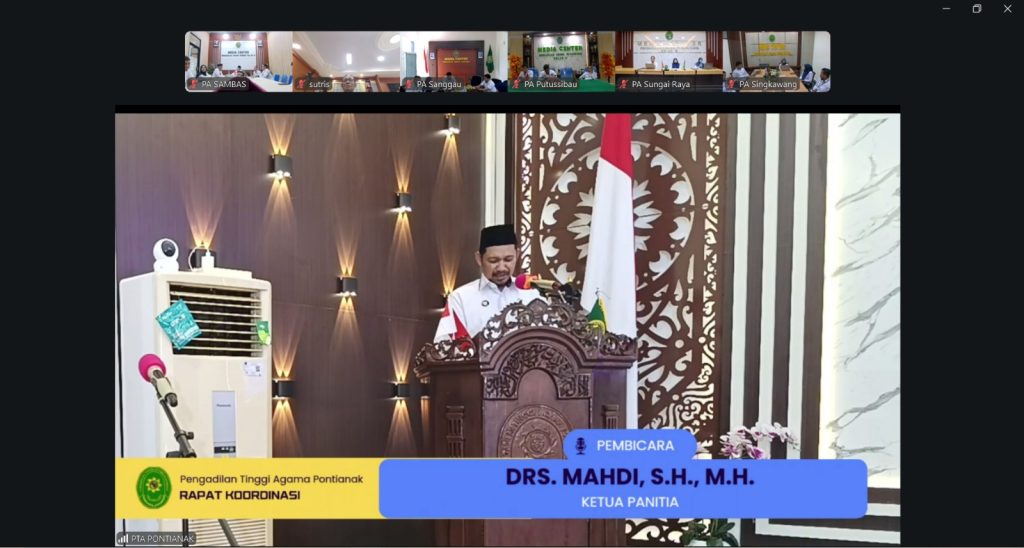 (Pontianak, 20 April 2026) – Rakor PTA Pontianak resmi dibuka pada hari Senin (20/04/2026). Kegiatan yang berlangsung selama dua hari ini mengusung tema “Peradilan Agama Modern dan Terpercaya, Masyarakat Aman dan Sejahtera.” Rakor diikuti oleh Ketua, Panitera dan Sekretaris seluruh satuan kerja di wilayah hukum PTA Pontianak secara luring dan seluruh aparatur secara daring.