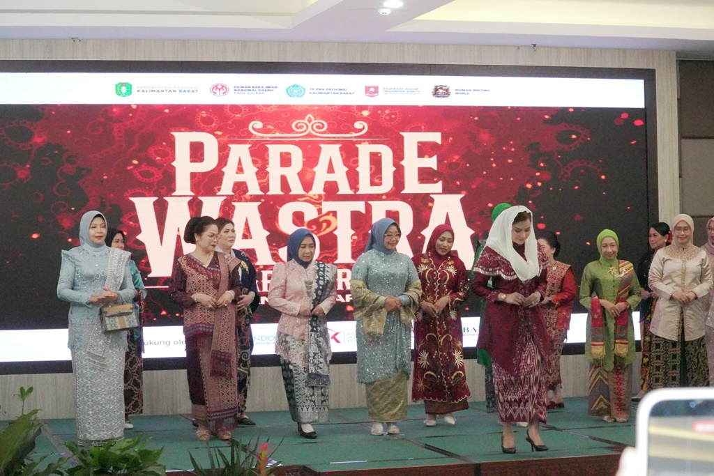 Rangkaian kegiatan dilanjutkan dengan Parade Wastra yang menampilkan para Kepala Daerah perempuan, istri Kepala Daerah, istri Forkopimda, Ketua Dharma Wanita Provinsi Kalimantan Barat, serta Ketua TP PKK dari seluruh kabupaten/kota di Kalbar. Mereka tampil anggun dan percaya diri di atas panggung, memperagakan berbagai busana wastra khas daerah dalam konsep catwalk yang elegan.