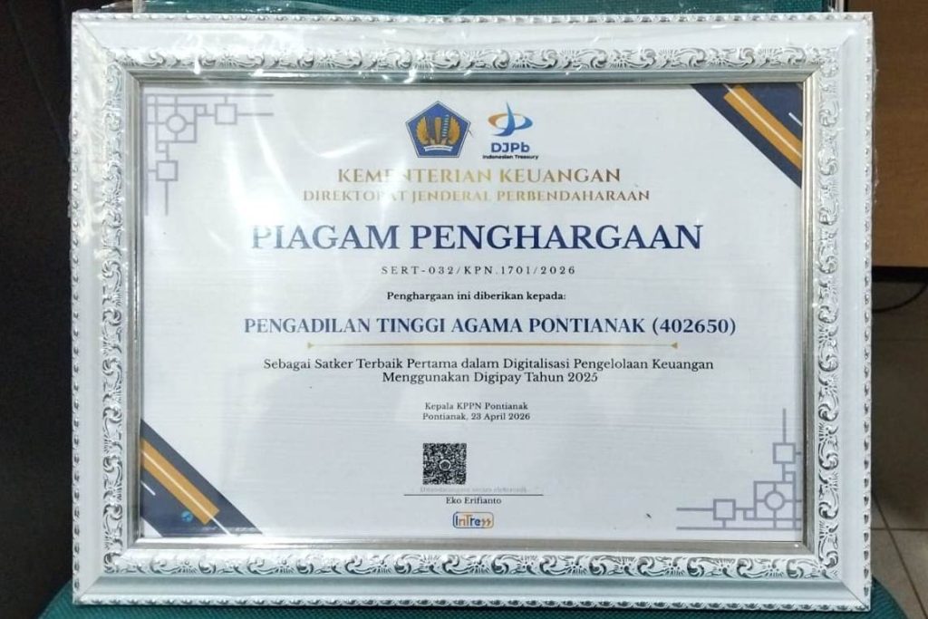 Pontianak, 23 April 2026 – PTA Pontianak kembali menorehkan prestasi dengan meraih dua penghargaan dalam kegiatan Stakeholder’s Day yang diselenggarakan oleh KPPN Pontianak di Aula Kanwil DJPb Provinsi Kalimantan Barat, Kamis (23/4).