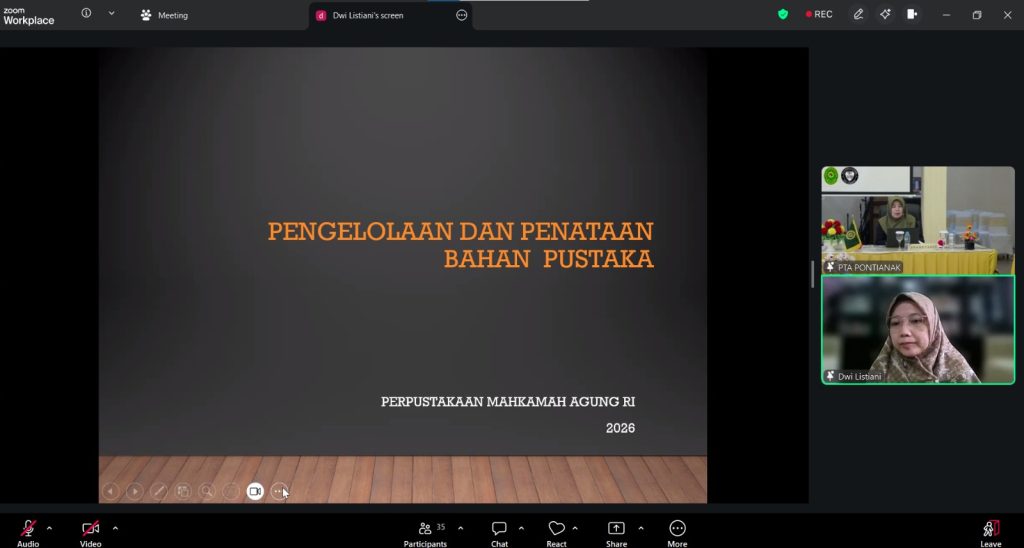 Menghadirkan narasumber dari Mahkamah Agung Republik Indonesia, DDTK kali ini mengangkat pemanfaatan aplikasi SLiMS Bulian G Roger sebagai sistem pengelolaan perpustakaan berbasis digital. Kegiatan ini merupakan bagian dari inovasi PTA Pontianak bertajuk Upgrading Skill Series yang berfokus pada peningkatan kapasitas sumber daya manusia (SDM) di lingkungan peradilan agama.
